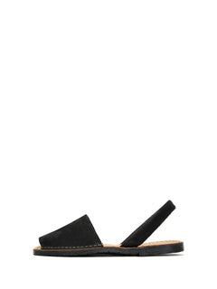 The Sole Macaw Nubuck Menorcan sandals showcase classic Mediterranean design in a refined black finish. Expertly handmade, these women's slides feature premium nubuck uppers paired with authentic Menorcan craftsmanship, ensuring outstanding comfort.