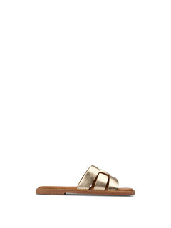 Give your summer look the perfect Midas touch with these Nura slides from SOLE. An easy slide-on-and-go design, the Nelly sandal is made for effortless style and sunny, dazzling vibes.