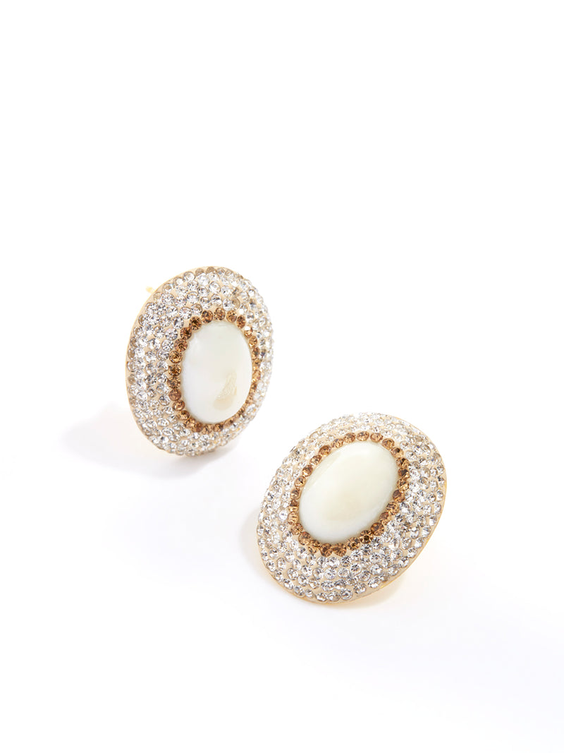 Large Pearl Crystal Stud Earrings White Crystal