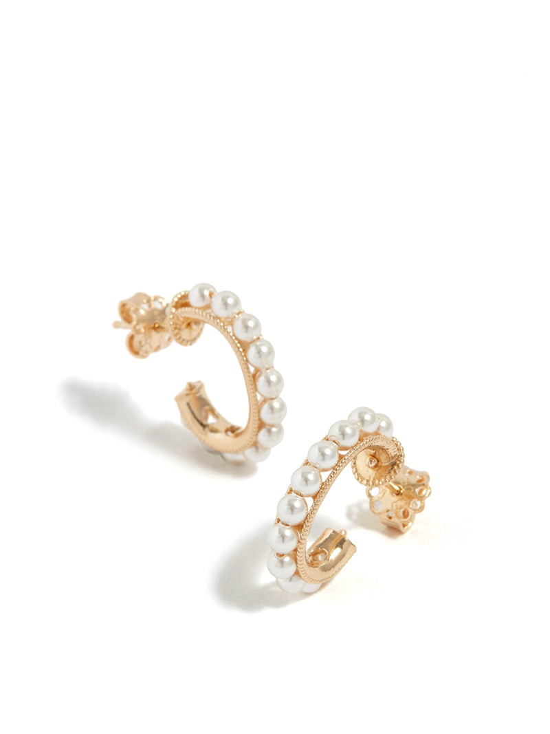 Pearl Mini Mondello Hoop Earrings Core Gold White Pearl