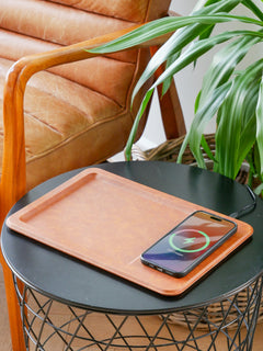 Leather Wireless Charger Tray Brown