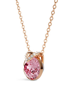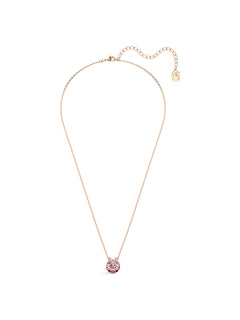 Bella Round Cut Pendant Necklace Pink Stone Rose Gold Plated