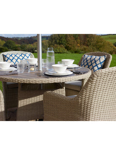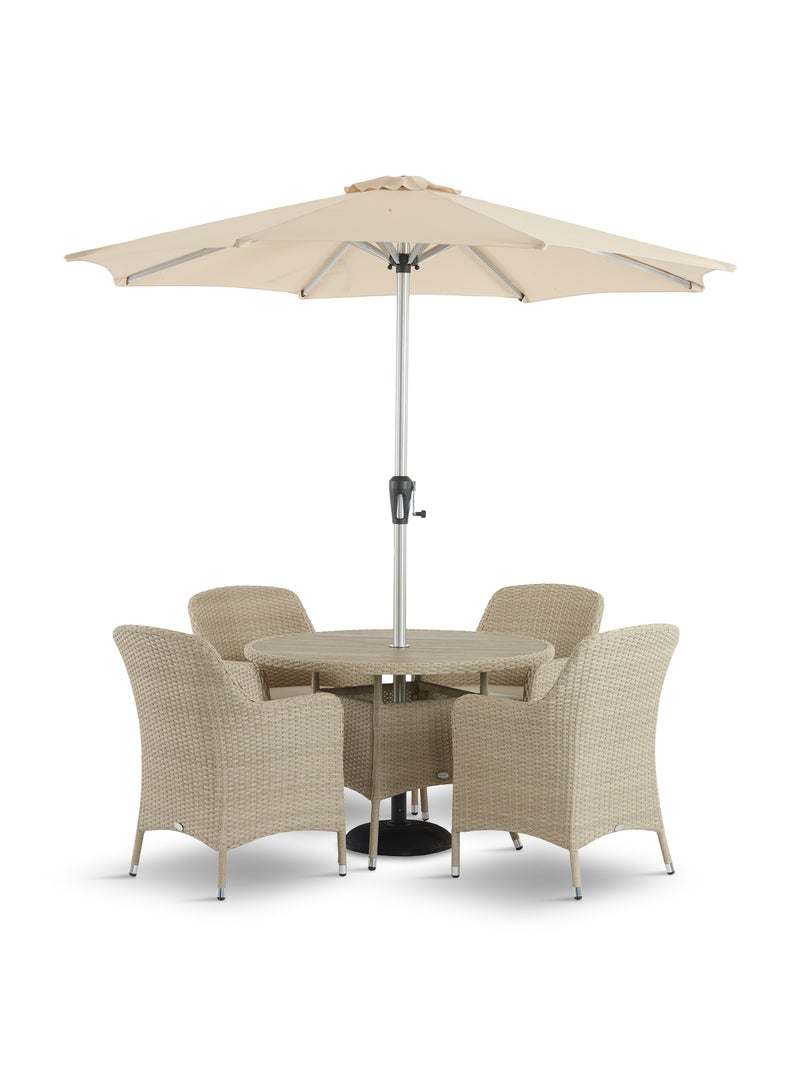 Tetbury Rattan 4-Seat Round Dining Set with Tree-Free Top Parasol & Base