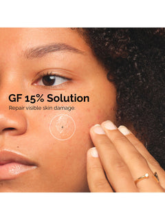GF 15% Solution helps minimise the look of skin damage to regenerate the appearance of aging skin across the face and neck. This growth factor serum incorporates three technologies to target: Fine lines and wrinkles: GF 15% Solution helps to regenerate the look of skin by reducing the appearance of fine lines and wrinkles, including crow’s feet, forehead lines, and smile lines.
