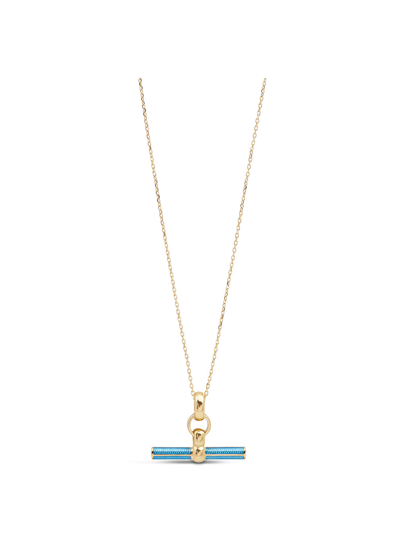 Aquamarine Enamel Small T-bar Necklace