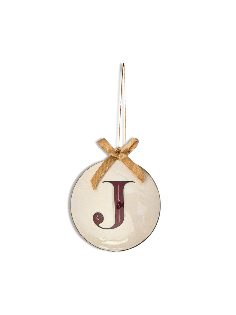 Enamel Round Alphabet Letter Bauble WHITE / RED
