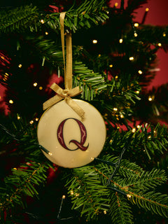 Enamel Round Alphabet Letter Bauble WHITE / RED