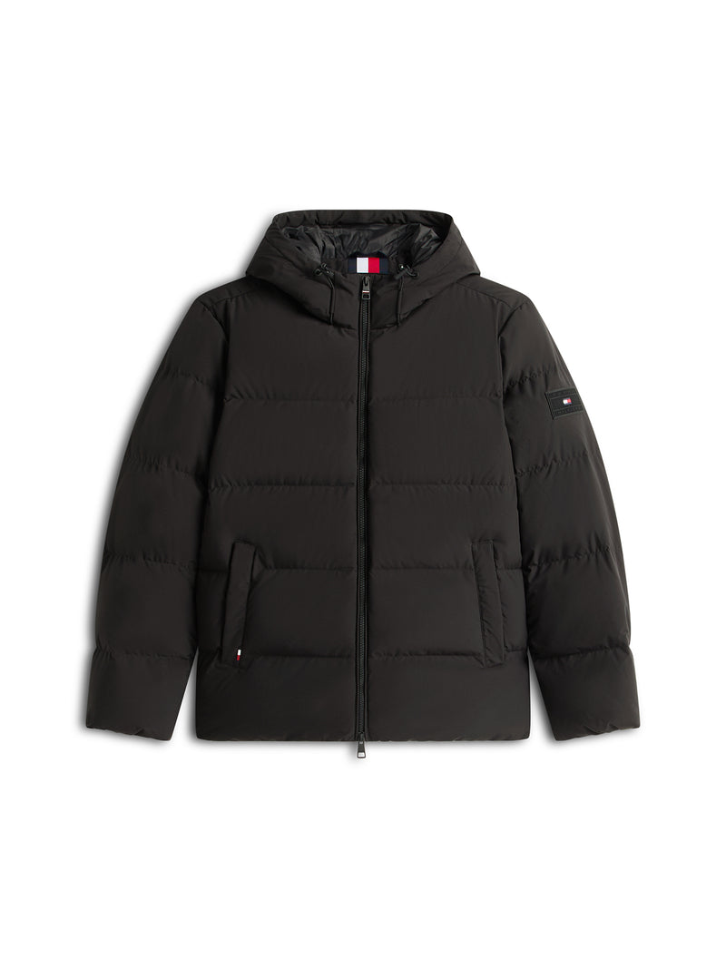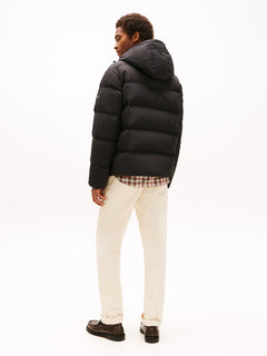 The Down Hooded Puffer Jacket by Tommy Hilfiger delivers practical warmth with a streamlined silhouette. Designed with water-repellent fabric, padded insulation and a protective hood, it’s finished in black for versatility. Layer over casual looks. A dependable jacket for cold-weather dressing.
