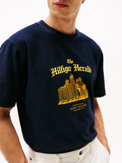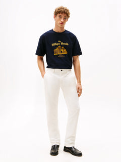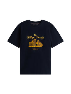 This Graphic Relaxed Crew Neck T-Shirt from Tommy Hilfiger offers a comfortable fit with its soft cotton fabric. Designed with a relaxed silhouette and classic crew neckline, it provides ease and breathability for everyday wear. The graphic detail adds a stylish touch, making it a versatile addition to any casual wardrobe.