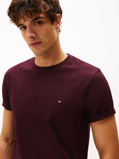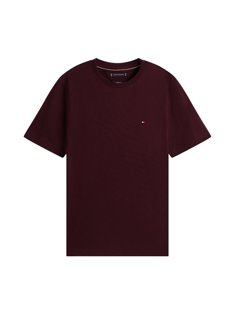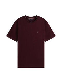 This deep burgundy crew neck t-shirt by Tommy Hilfiger features a signature flag embroidery that adds a subtle, stylish detail. Made from soft cotton, it offers comfortable wear and breathability, making it a versatile choice for everyday casual outfits. Its classic fit ensures effortless style and ease of movement.