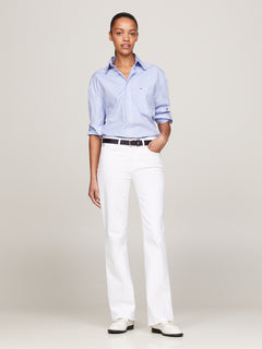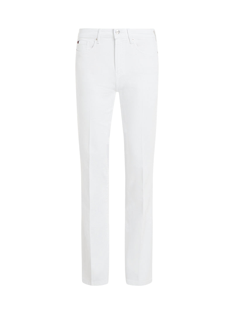 These white bootcut jeans by Tommy Hilfiger are cut from stretch-cotton denim for structure and comfort. The mid-rise fit elongates the leg, while the clean wash gives a crisp, versatile finish.
