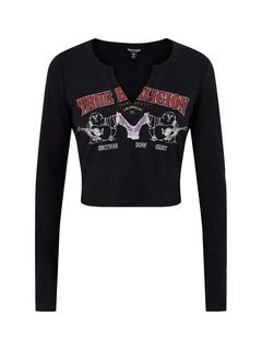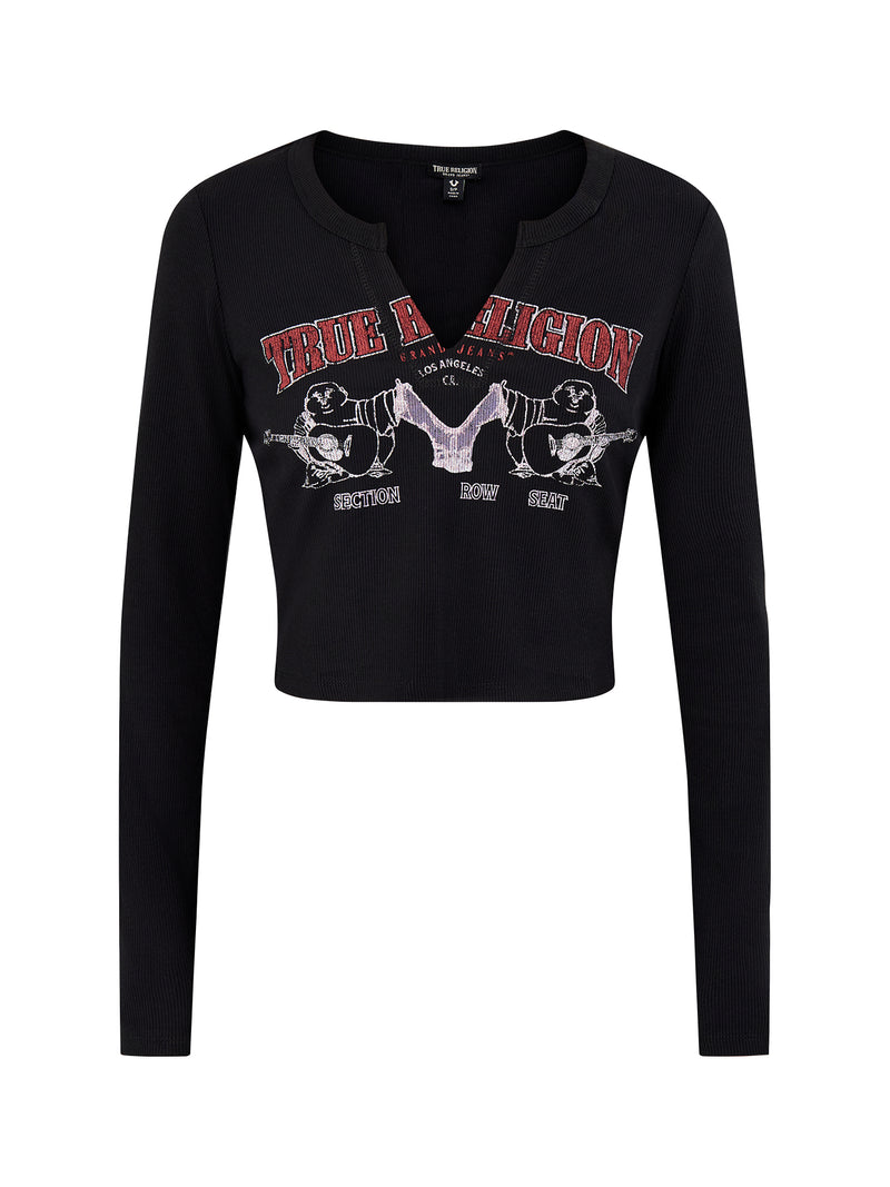 Buddha V-Neck Rib Long Sleeve Top Black