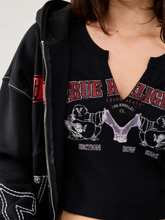 The Buddha V-Neck Rib Top by True Religion is made from soft stretch cotton with signature stitched detailing. Its slim fit and tonal logo embroidery deliver everyday versatility with a luxe edge.