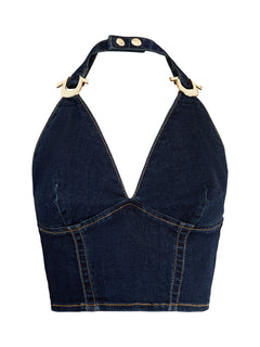 This Denim Tie Halter Top features a stylish tie detail at the neck, offering an adjustable and comfortable fit. Crafted from durable denim fabric, it combines casual appeal with a flattering halter silhouette, perfect for warm weather or layering. Its versatile design pairs well with jeans, skirts, or shorts for a chic, effortless look.