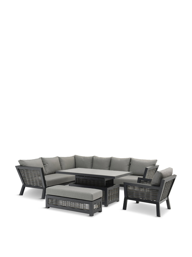 Tuscan Wicker L-Shape Sofa with Rectangle Piston Adjustable Height Table Bench & Chair