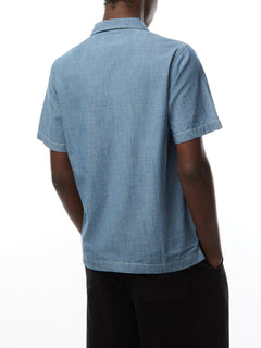 A regular-fit shirt with a summer jacket feel. Designed to be worn open necked, it has a split hem and a purposeful contrast topstitch to highlight all its details. Regular fit. Four pockets. Open collar. Split hem.