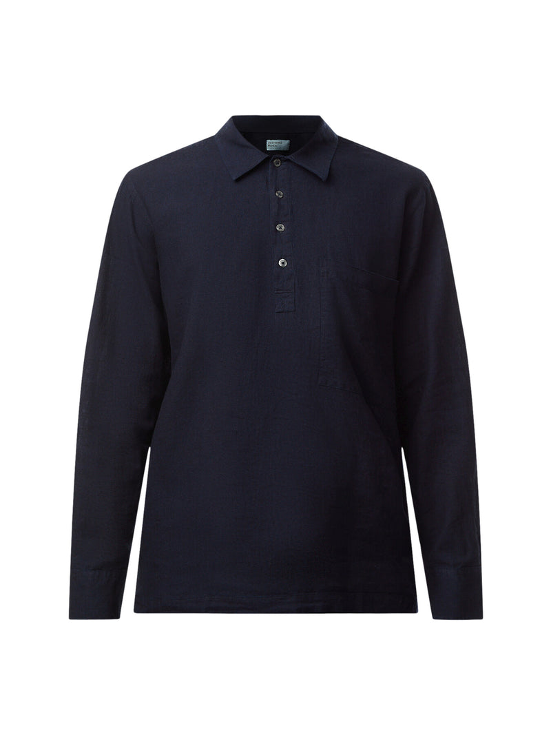 Simple, contemporary and stylish, Universal Works Pullover Shirt is an over-the-head shirt, but with an added button placket detail. Regular fit. Three-button placket. Chest pocket. Longer back hem.