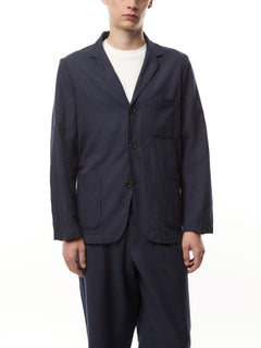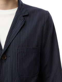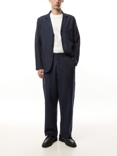 A classic Universal Works piece, this is a loose fitting, unstructured jacket with three buttons and three patch pockets. It has a 'dress up, dress down' sport coat feel—a relaxed take on formal.