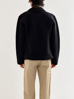 This black wool jacket offers a classic silhouette crafted from high-quality wool for lasting warmth and comfort. Its versatile design makes it suitable for both professional settings and casual wear, providing a polished look while keeping you cozy in cooler weather. Durable and stylish, this jacket is a practical addition to any wardrobe.