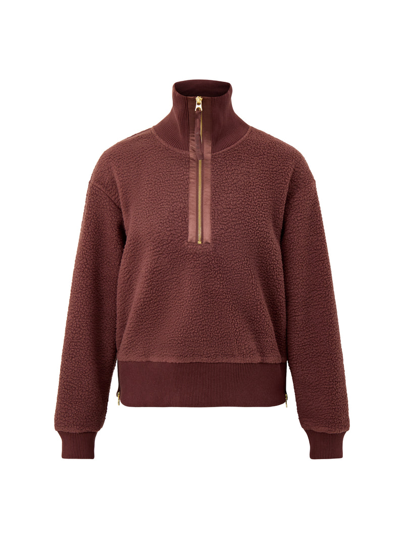 The Roselle Half Zip Fleece by Varley is designed for transitional layering. Crafted in ultra-soft textured fleece, it features an oversized fit and high collar to keep warmth in while maintaining a chic, relaxed aesthetic.