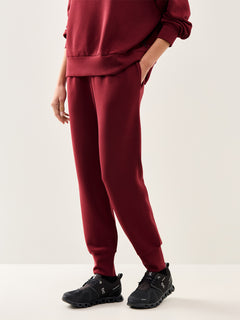 The Slim Cuff Pant by Varley in New Maroon combines ease and polish. Cut from the brand’s DoubleSoft® fabric, it features a tapered fit and elasticated cuffs for a contemporary silhouette that’s ideal for travel or relaxed days at home.
