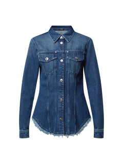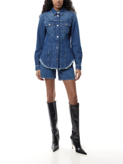 Shirt Denim R Washed Medium Blue With Frayed Edges