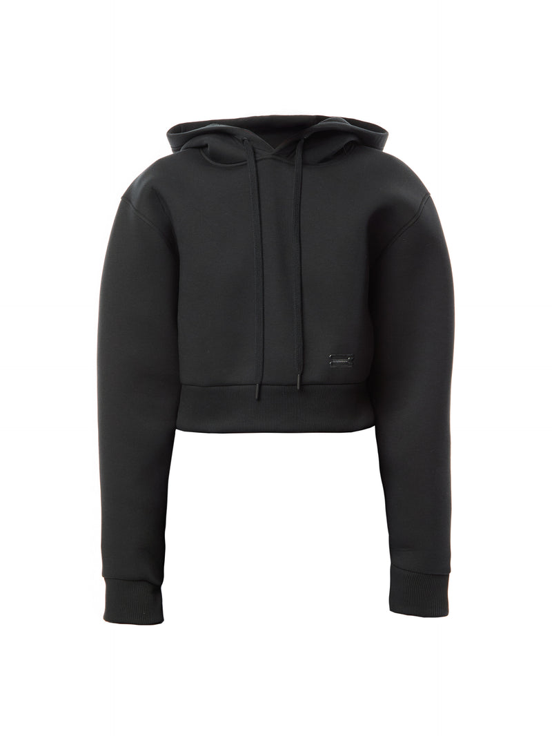 With its boyish boxy fit, this Cropped Hoodie sits comfortably at the waistline for a neat silhouette. It has full-length sleeves with ribbed cuffs and a structured hood with a metal tipped drawstring. A silicone B logo detail at the front left body adds the house's signature discreet branding.