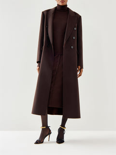 This double-faced, double-breasted maxi overcoat is crafted from a luxurious cashmere blend, offering exceptional warmth and softness. Its maxi length provides full coverage, making it ideal for colder seasons, while the double-breasted design adds a timeless, elegant touch. Perfect for layering, this coat combines style and comfort for versatile wear throughout the year.