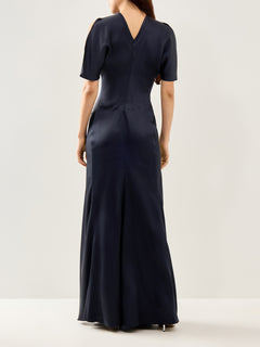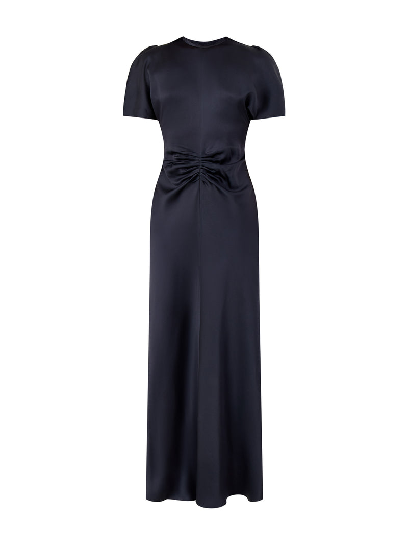 The Gathered Waist Floor Length Dress by Victoria Beckham presents a fluid, elongated silhouette accented with considered gathering at the waist. Its smooth drape brings understated presence to occasion dressing. A refined interpretation of modern eveningwear.