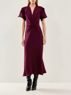 V-Neck Bella Midi Dress Merlot