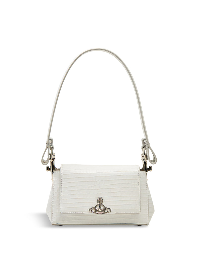Hazel Mini Croc Embossed Small Handbag White Leather