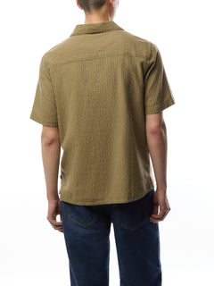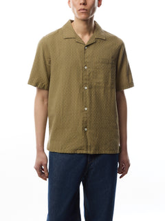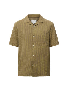 Our staple Didcot short-sleeve shirt makes a triumphant return for SS25. Cut for a relaxed, breezy fit, this khaki version is made from a 100% soft-washed cotton and showcases a square grid design with subtle holes within the squares.