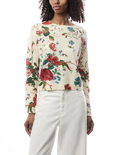 Relaxed-fit cropped sweater with a beautiful bird and floral print, the model boasts a round neckline, long raglan sleeves and rib-knit trims.