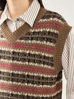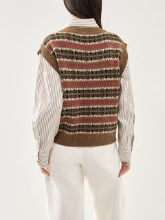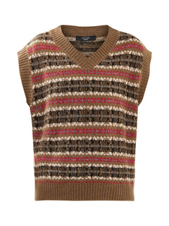 The Fleres Knitted Fairisle Vest combines classic Fairisle patterns with a comfortable knit fabric, making it a versatile layering piece. Its timeless design adds a touch of traditional style to any outfit, while the soft knit ensures warmth and ease of wear. Ideal for cooler days, this vest pairs well with shirts or sweaters for a polished, cozy look.