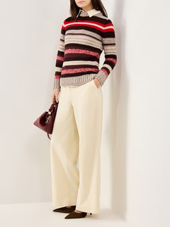 The Ilde Crew Neck Knit by Weekend Max Mara is crafted in soft wool with classic red and cream stripes. Designed for an easy, relaxed fit with ribbed trims, it captures the brand’s understated approach to luxury-elevated essentials defined by Italian artistry.
