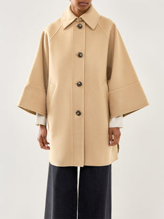 The Rufo Coat features wide sleeves and a padded back, combining comfort with distinctive style. Its design offers freedom of movement while the padding adds subtle structure and warmth. Ideal for layering, this coat provides practical sophistication for everyday wear.