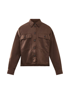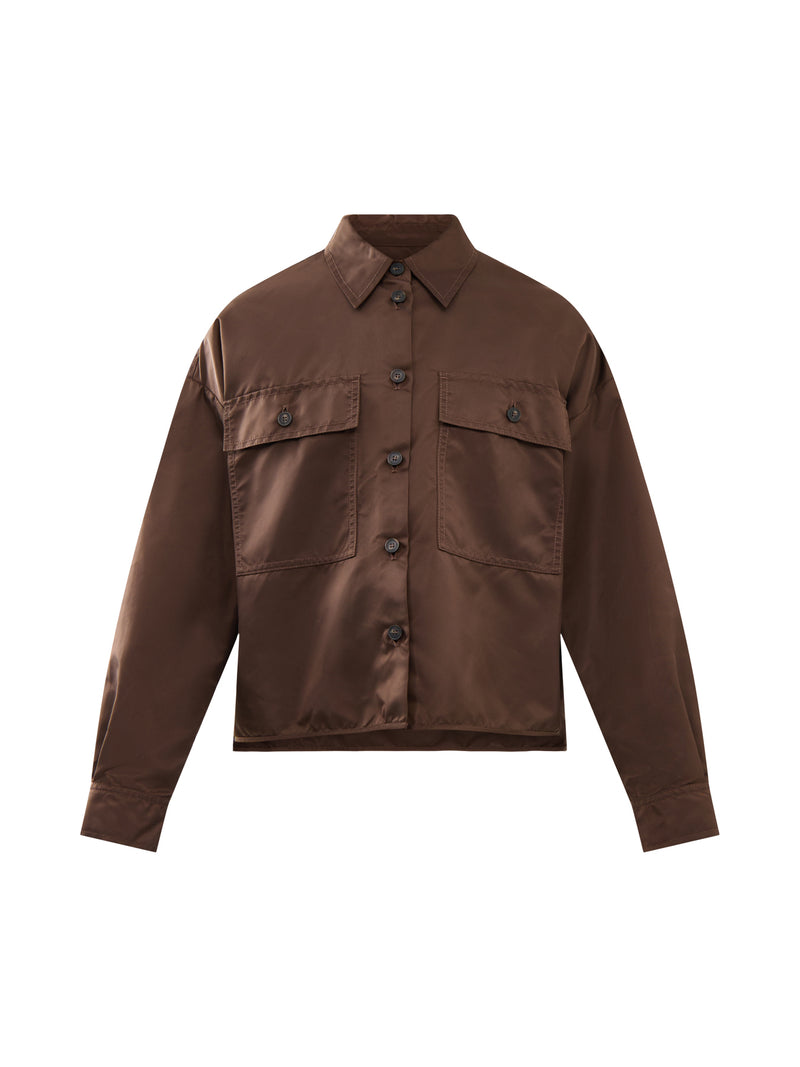 This Vivetta Nylon Shirt Jacket in a rich chocolate hue combines style and practicality. Crafted from 100% polyamide, it offers lightweight durability and easy care. Its shirt-style design makes it a versatile layering piece, perfect for adding a polished touch to casual or weekend outfits.