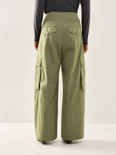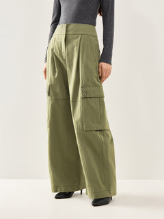 Oversized Long Wide Leg Tailored Trousers Dark Green