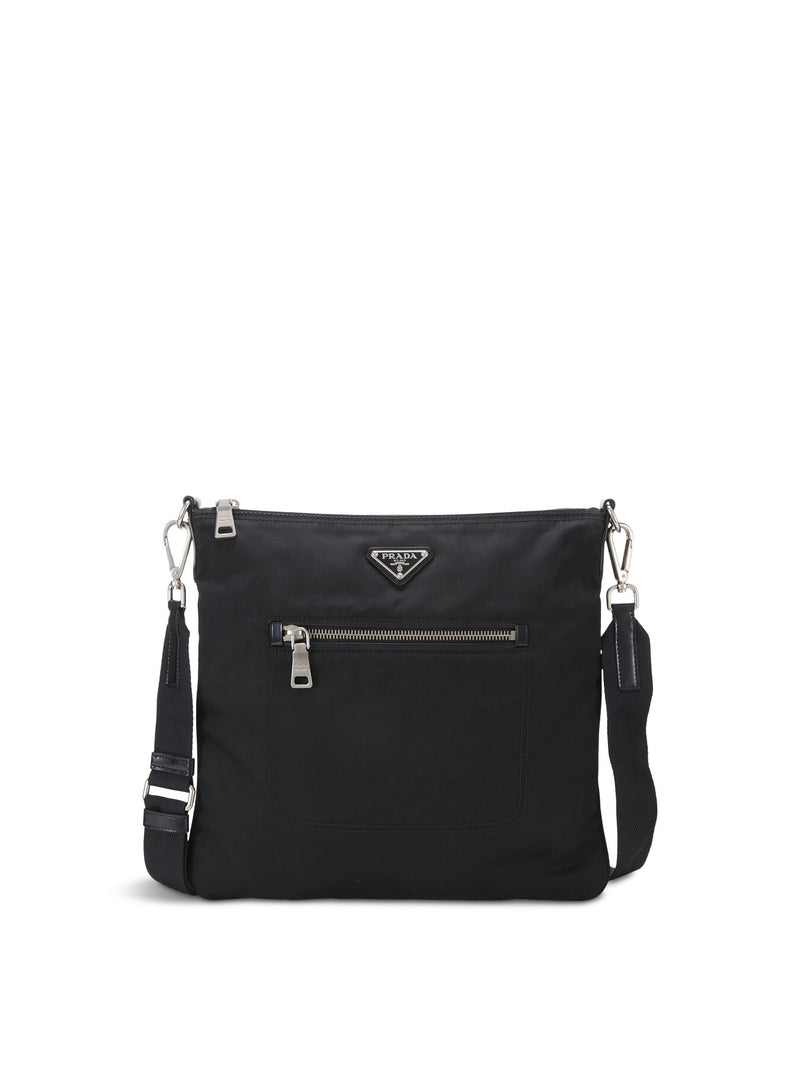 Vintage Prada Black Nylon Front Zip Pocket Small Messenger Bag
