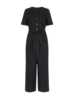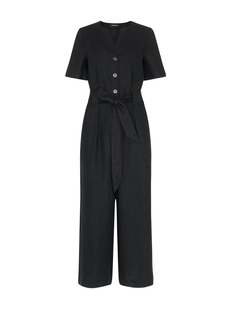 Black Fiona Linen Button Jumpsuit