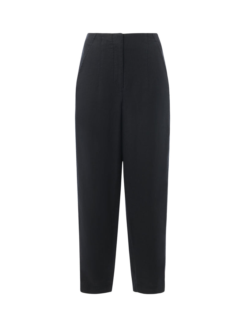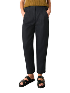 These black linen barrel leg trousers from Whistles blend comfort and style effortlessly. Crafted from breathable linen, they offer a relaxed fit with a modern barrel leg silhouette, perfect for keeping cool while maintaining a polished look. Ideal for both casual and smart-casual occasions, these trousers are a versatile addition to your wardrobe.