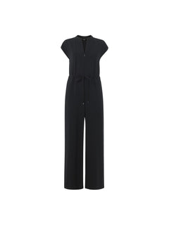 This black sleeveless jumpsuit offers a relaxed fit for comfortable all-day wear. Made from soft viscose fabric, it features a drawstring waist that allows for an adjustable and flattering silhouette. Ideal for casual outings or layering, this versatile piece combines ease and style effortlessly.
