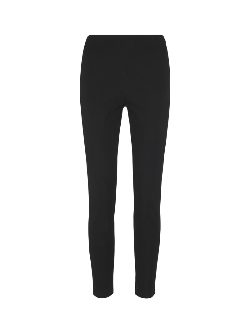 These black super stretch trousers feature a skinny fit that contours the legs for a sleek silhouette. Crafted from comfortable cotton, they offer breathability and ease of movement. The ankle-length design adds a modern touch, while the side zip ensures a secure and stylish finish. Ideal for both casual and smart occasions, these trousers combine comfort with contemporary style.