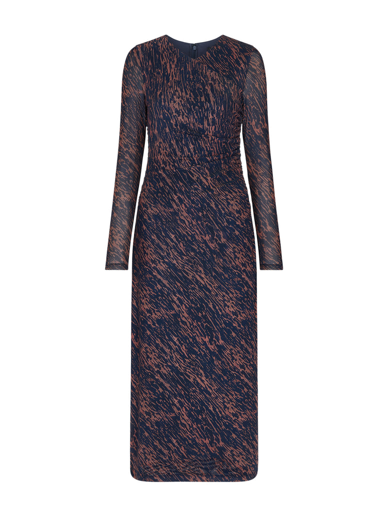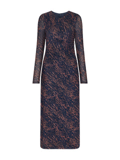 The Abstract Marks Mesh Dress by Whistles interprets print with fluidity, allowing the mesh base to build dimension and texture. In a cool blue palette, it offers a contemporary approach to print-forward dressing. A modern dress silhouette designed to move easily between day and evening styling.