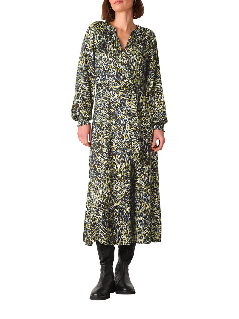 The Leopard Swirl Midi Dress in Khaki and Multi by Whistles is cut with a flowing silhouette and bold animal print. Feminine yet striking, it creates statement appeal. A dress crafted for refined occasion wear.