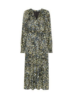 Khaki/Multi Leopard Swirl Midi Dress