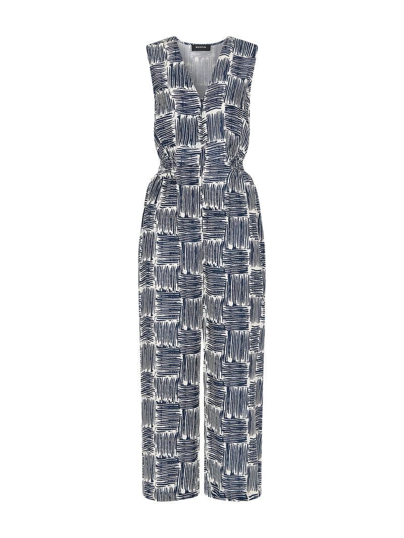 This jumpsuit offers a relaxed fit and features a distinctive hatch square motif for a modern look. Made from a Cupro mix, it ensures a soft, breathable feel that enhances comfort throughout the day. The navy and multi-colour design adds subtle style, making it a versatile choice for various occasions.
