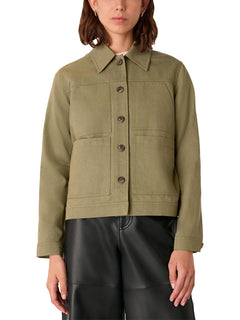 The Mia Pocket Detail Jacket by Whistles takes a utility aesthetic into a cleaner, contemporary silhouette. Pocket placement adds function and dimension in a grounded green palette. A considered outer layer cut for modern, transitional dressing.