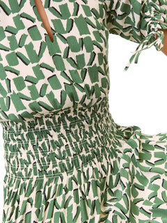The Ivory/Multi Abstract Squares Midi Dress is crafted from a cupro mix, offering a soft and breathable fabric. It features short sleeves and a midi length, providing a comfortable and stylish fit. The abstract print adds a modern and artistic touch to this versatile dress.