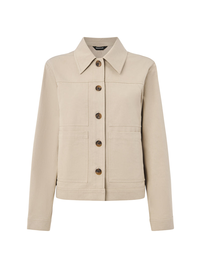 The Mia Pocket Detail Jacket by Whistles reinterprets classic utility detailing with a refined neutral tone. Cut with clarity and purpose, it offers a streamlined top layer. A considered outer layer cut for modern, transitional dressing.